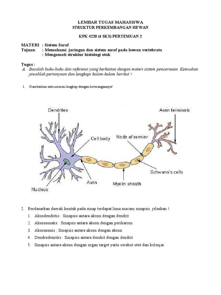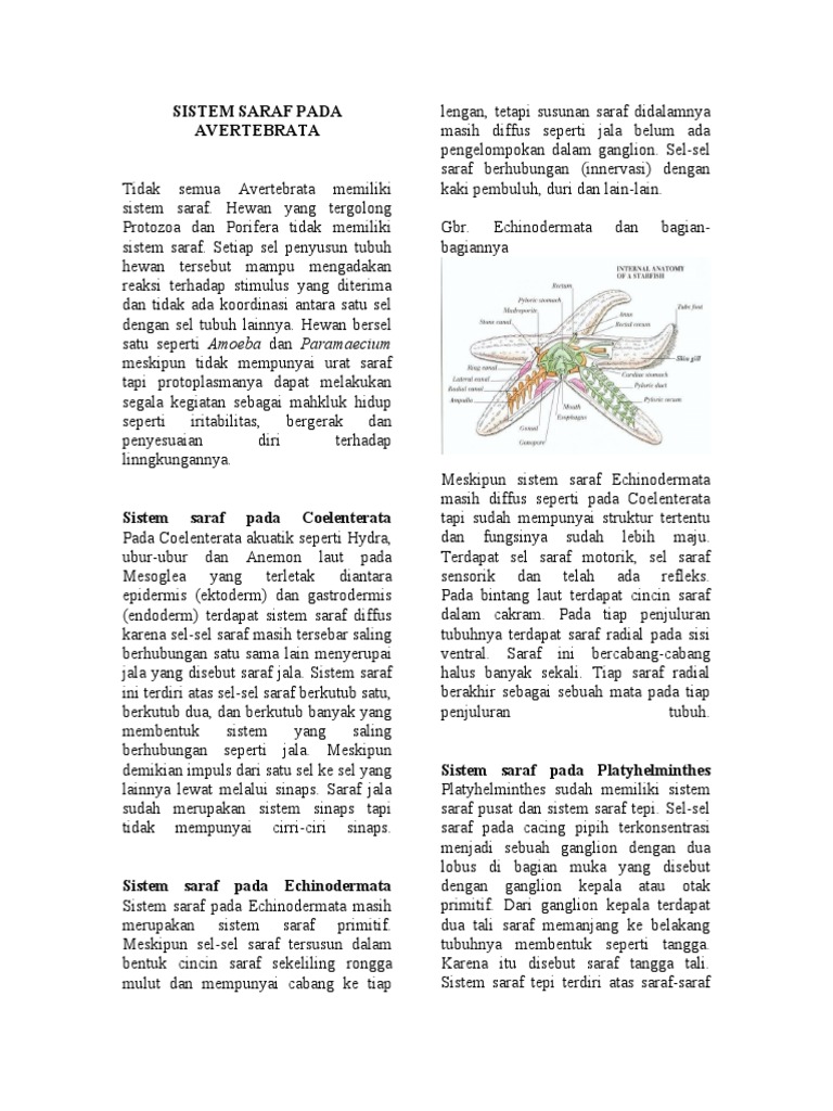 Kompleksitas sistem saraf hewan tergantung pada gaya hidup dan rencana tubuh. Laporan kuliah lapangan laboratorium universitas pendidikan indonesia. Sistem saraf pada ikan berupa gurat sisi, yang merupakan suatu saluran dibawah kulit yang mempunyai saluran keluar tubuhnya. Gambar 1.1 menerima sinyal untuk diteruskan ke badan sel saraf. Sistem saraf hewan berasal dari namanya dari saraf, yang mana merupakan bundel silinder serat yang keluar dari otak dan central cord, dan cabang pada tingkatan paling dasar, fungsi sistem saraf adalah untuk mengirimkan sinyal dari 1 sel ke sel lain, atau dari 1 bagian tubuh ke bagian tubuh lain. Berbeda dengan pada avertebrata, di mana sistem saraf pada avertebrata secara umum belum terdifferensiasi secara nyata seperti halnya pada vertebrata, maka. Sistem koordinasi pada hewan meliputi sistem saraf beserta indra dan sistem endokrin (hormon). Sistem saraf echinodermata dikenal dengan saraf plexus, echinodermata tidak mempunyai otak dan hanya mempunyai cincin saraf pusat (ring nerves). Suatu hewan, sedangkan yang lainnya tidak ada. Materi sistem saraf pada hewan mulai dipelajari pada mapel ipa smp/mts dan biologi sma/ma. Secara keseluruhan, sistem saraf pada manusia tersusun dari beberapa bagian organ. Sistem rangka pada hewan vertebrata dapat kita bedakan menjadi dua macam yaitu: Diajukan untuk memenuhi salah satu tugas mata kuliah.